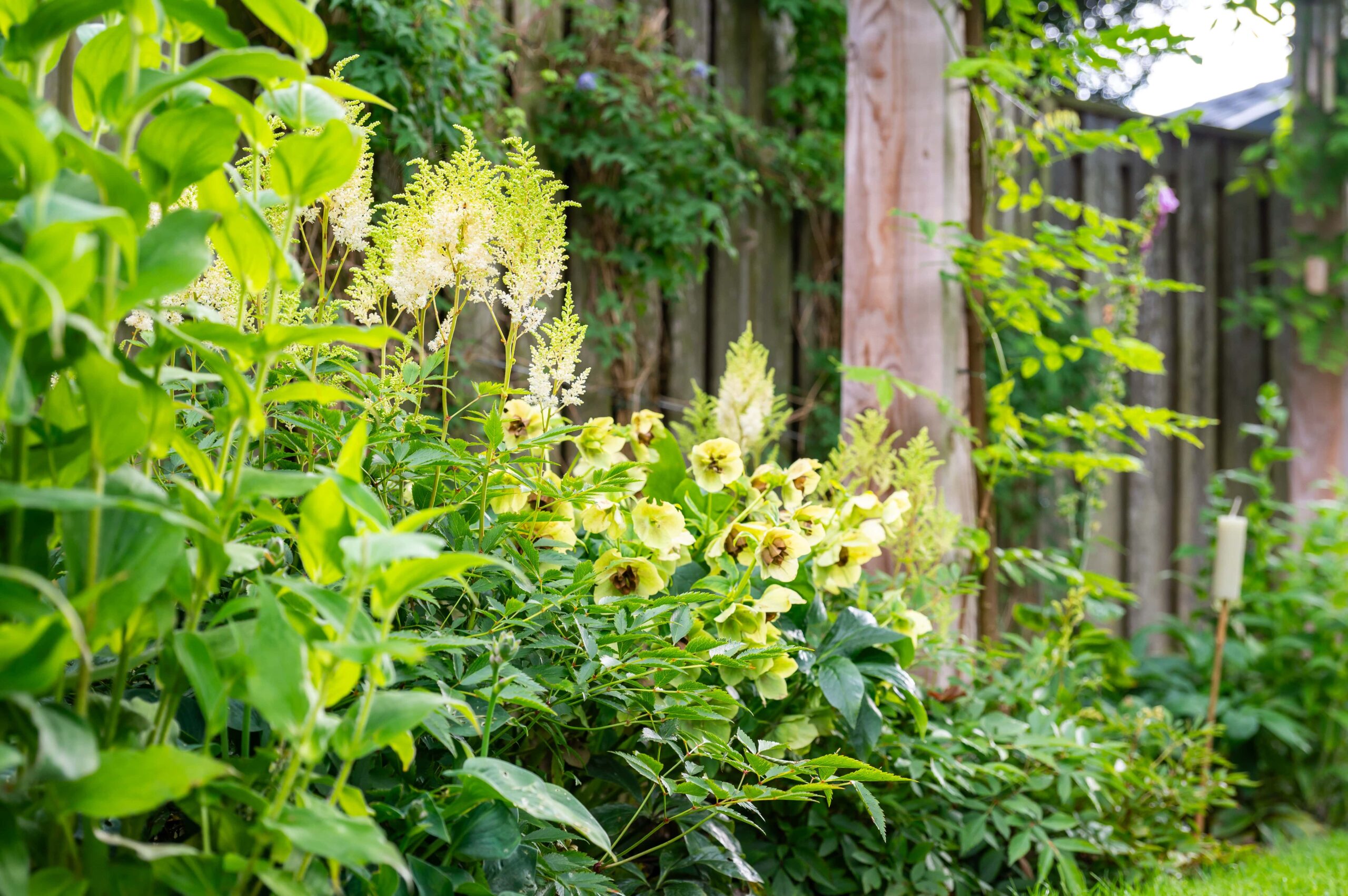 Omringd door weelderige beplanting en een blauwe regen die straks prachtig bloeit, is dit een tuin waar het hele gezin elke dag van geniet