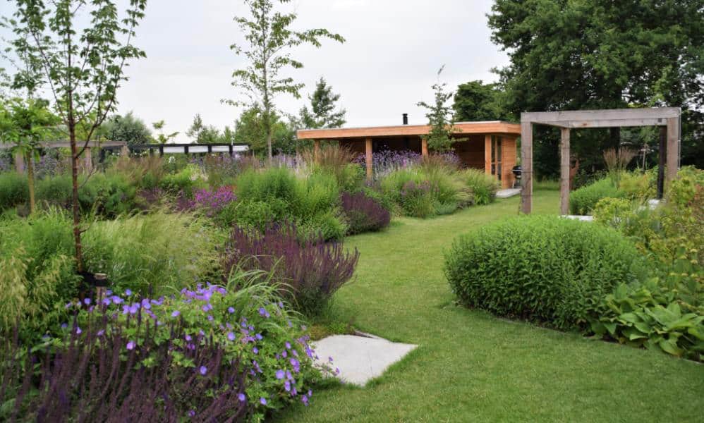 Achtertuin met uitbundige en verrassende beplanting