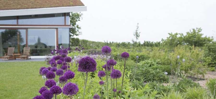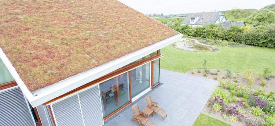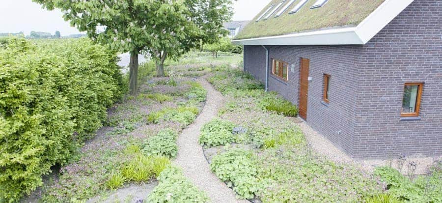 Het Sedumdak is de blikvanger van het woonhuis. Wij onderhouden dit Sedumdak door 2x per jaar onkruid te verwijderen en meststoffen aan te brengen. Hier vormen het huis en de tuin een duurzaam geheel. Zo zien we het graag!