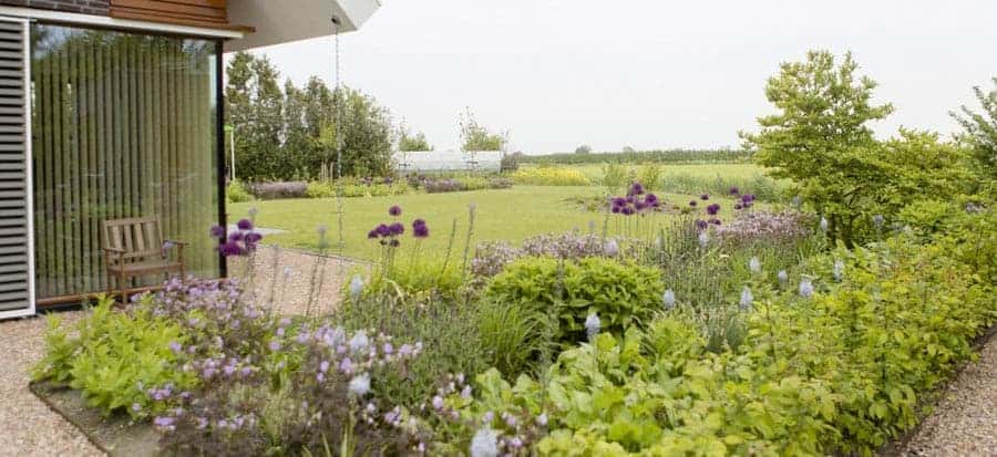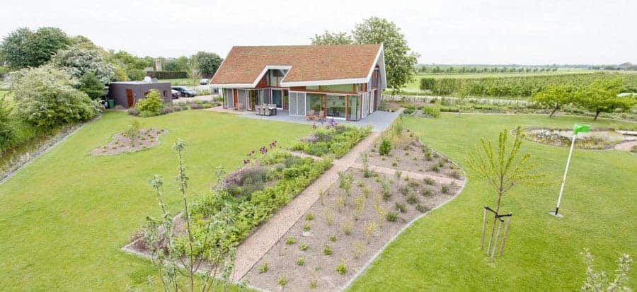 Bij deze moderne, duurzame woning (energie neutraal!) in het buitengebied van Houten hebben wij een echte ‘vaste planten tuin’ gerealiseerd. De tuin heeft veel plantenborders met een grote diversiteit aan vaste planten, heesters en hagen. In elk jaargetijde is hier iets bloeiends te zien. Dit is natuurlijk ook goed voor de bijen, vlinders en insecten.