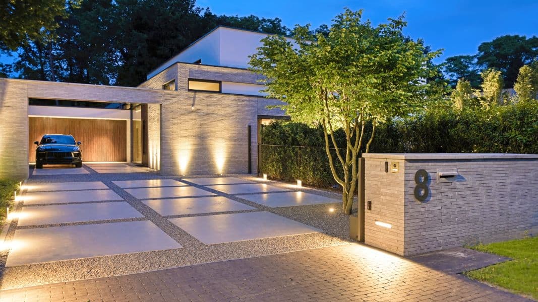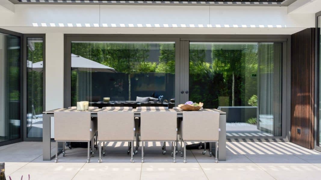 Rond deze getransformeerde jaren ’60-woning ligt een moderne tuin vol rust, lijnenspel en natuurlijke materialen.