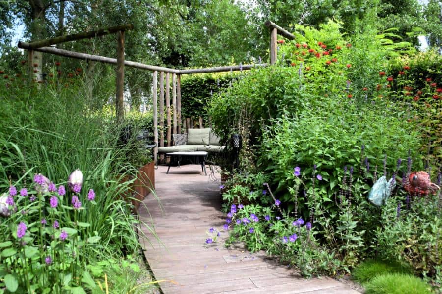 Sfeervolle achtertuin met uitbundige beplanting