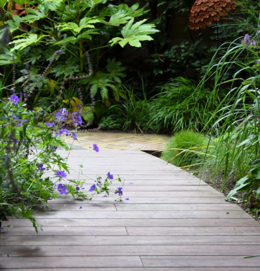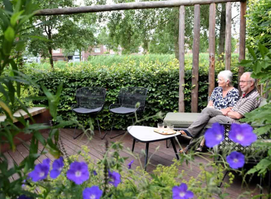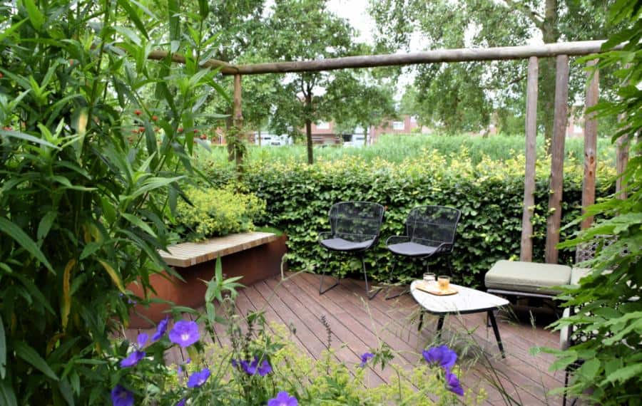 Welkom in deze sfeervolle achtertuin met mooie materialen en uitbundige beplanting.